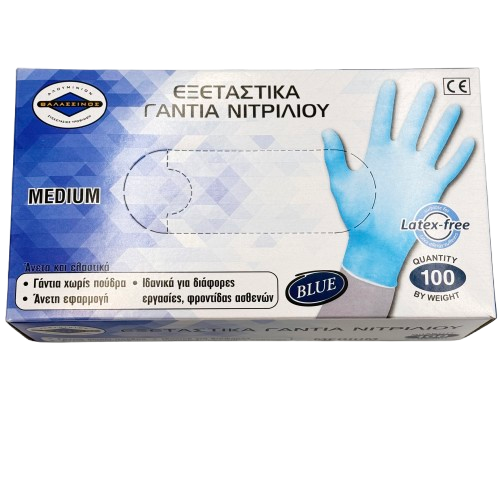 Blue Nitrile Gloves without powder, and not sterilized. They are extra resistance to any drillings and chemicals.