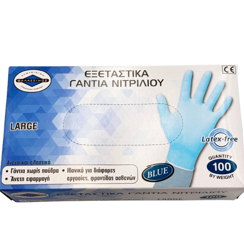 Blue Nitrile Gloves without powder, and not sterilized. They are extra resistance to any drillings and chemicals.