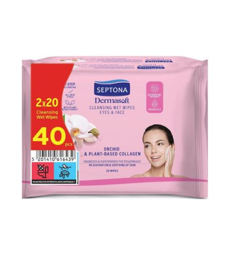 Septona Promo Dermasoft Orchid & Plant-Based Collagen Makeup Remover Wipes with Orchid & Collagen 2x20 Pieces