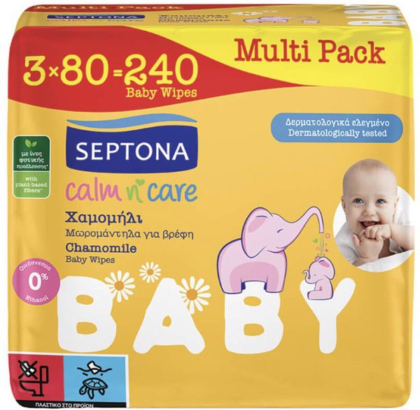 SEPTONA Μωρομάντηλα CALM N' CARE Χαμομήλι 3X80τεμ Multipack