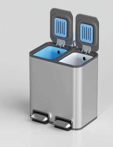 Κάδος Inox Διπλός με Πεντάλ 24L(12+12) με εσωτερικό κάδο.