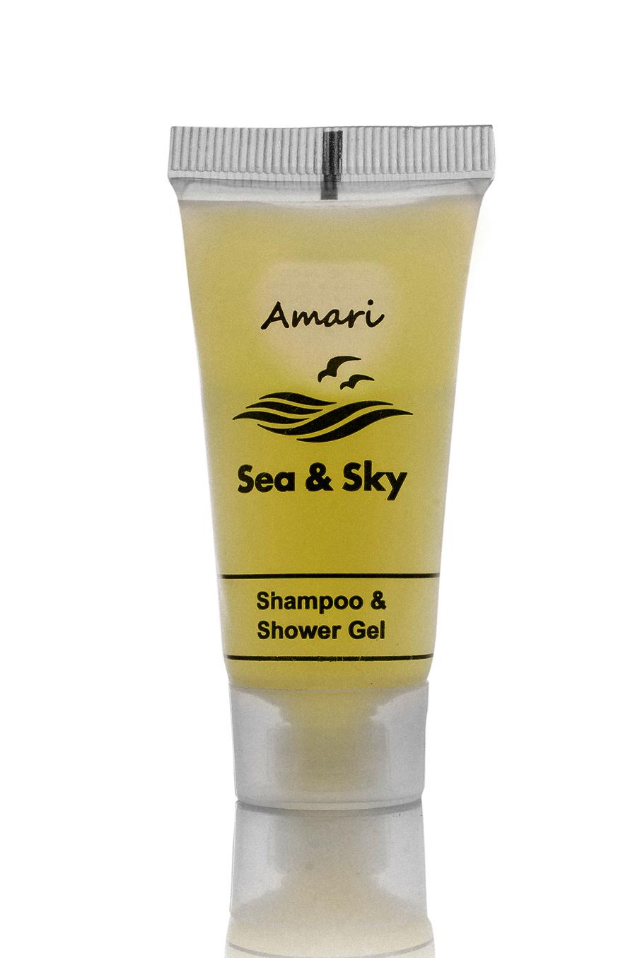Σαμπουάν & αφρόλουτρο Sea & Sky 20ml σε σωληνάριο, μια χρήσης.