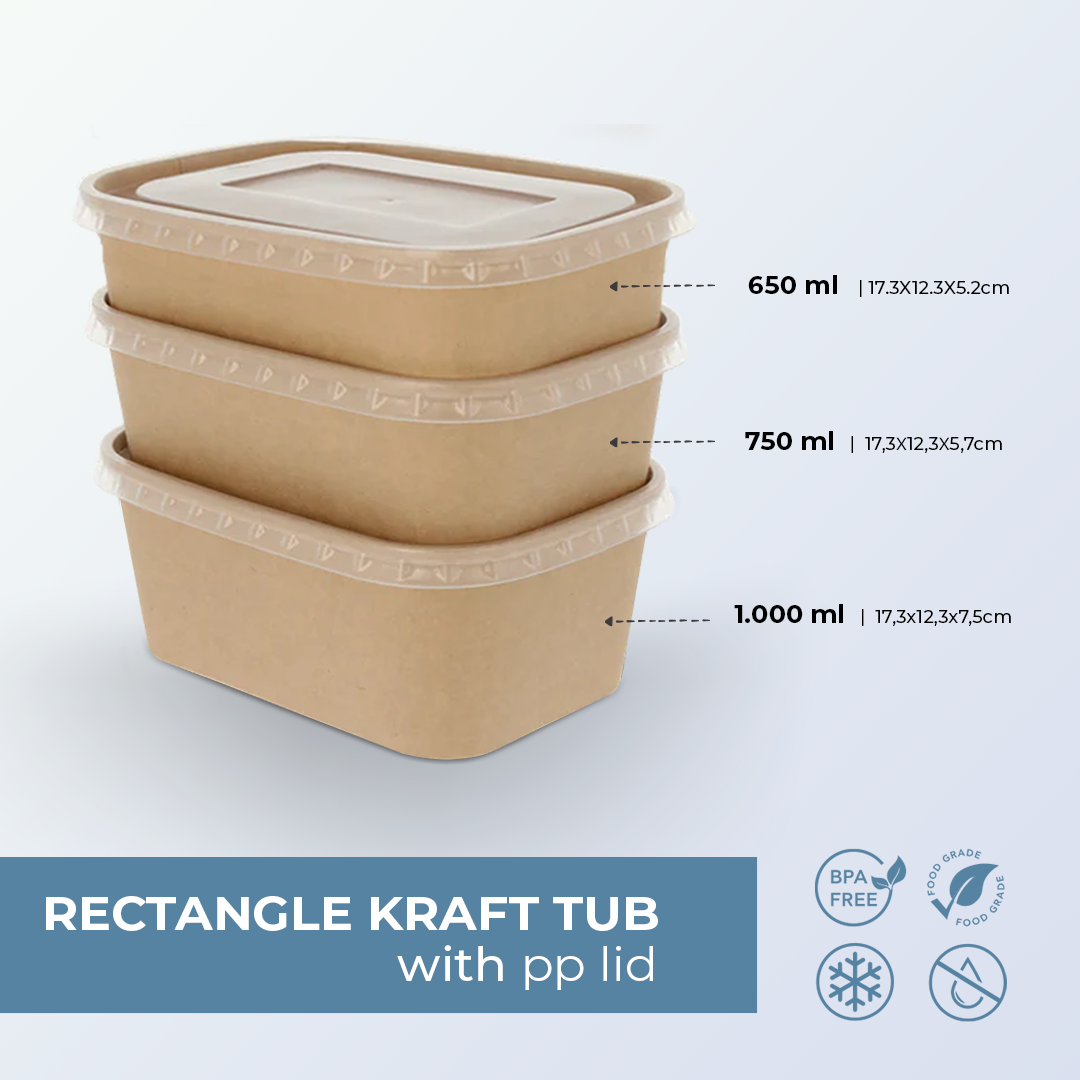 Σκεύος φαγητού Kraft Παραλληλόγραμμο 650ml - 50τμχ