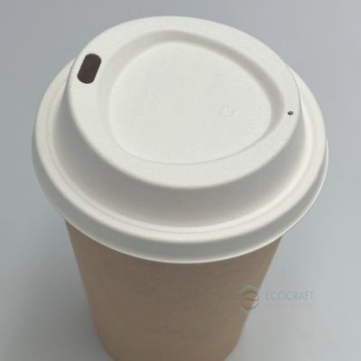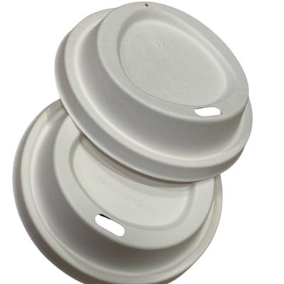 Οικολογικά λευκά καπάκια ποτηριών από ζαχαροκάλαμο, με στόμιο πιπίλας.