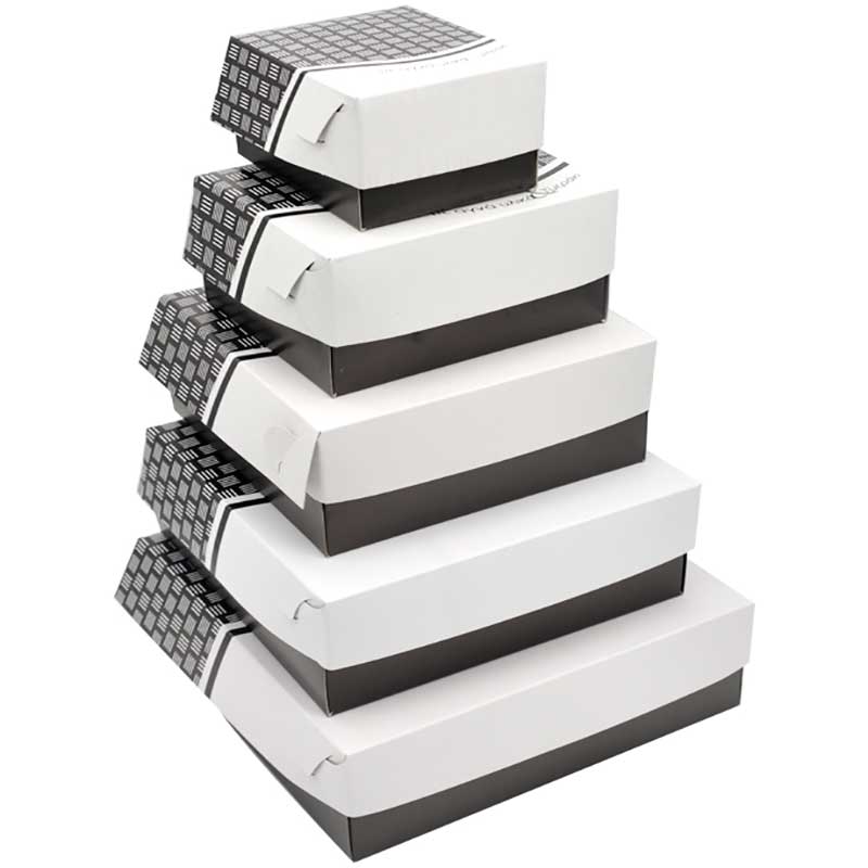 Κουτιά Ζαχαροπλαστικής σε ασπρόμαυρη απόχρωση για την συσκευασία γλυκών & αρτοποιήματων.