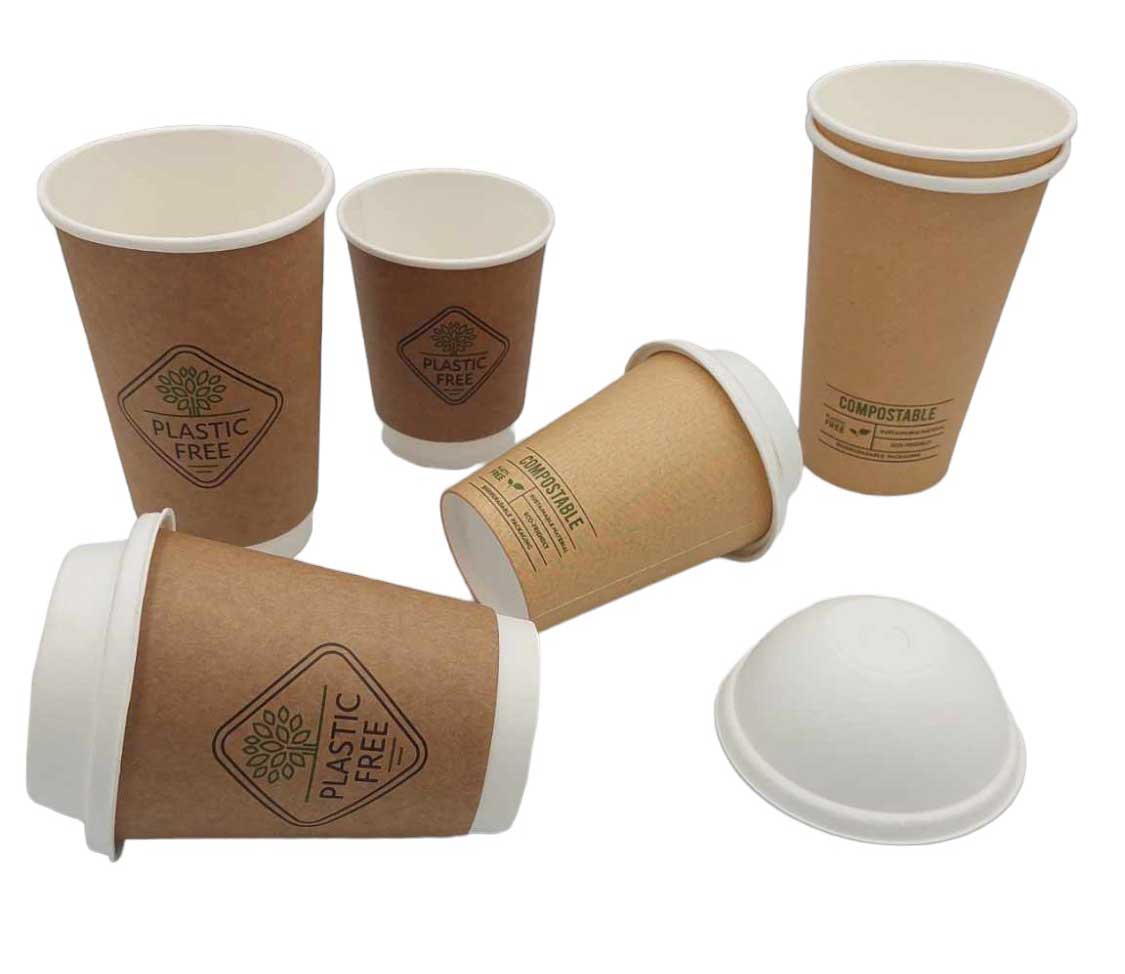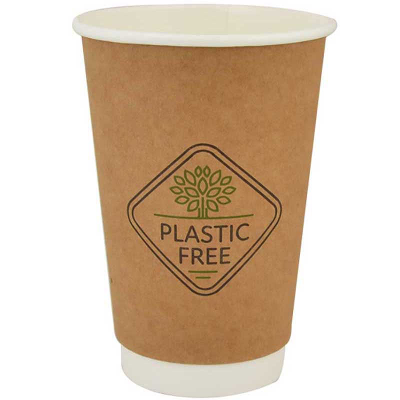 Disposable, double wall, paper cup in a craft color ,plastic free filobev coated.