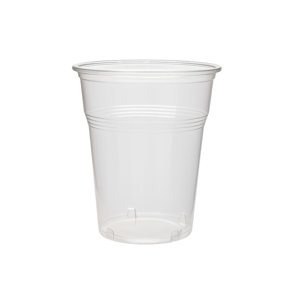 Clear plastic cups PP ,4L, disposable, that fits up to 400ml, suitable for cold beverages like coffee, beer, juice.